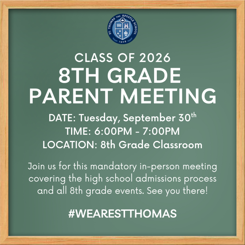 As mentioned at our food sale last meeting, our 8th grade high school information night is tomorrow at 6:00pm. We will focus on the high school admissions process and answer any questions. See you then!