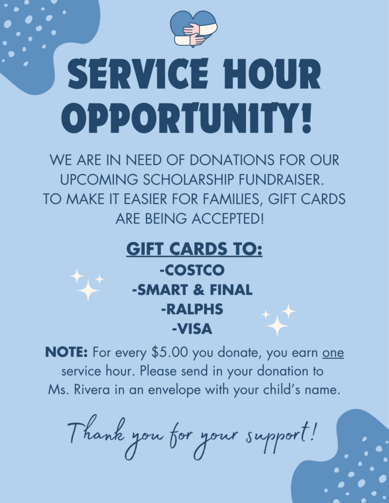 SERVICE HOUR OPPORTUNITY: Donations Needed!